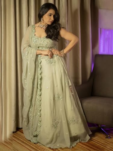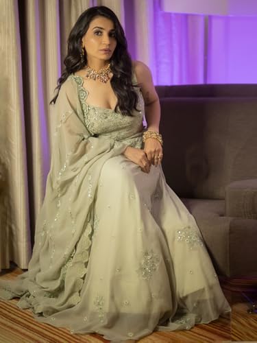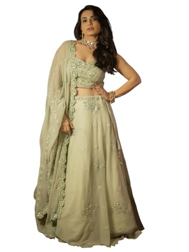 Zeel Clothing Women's Georgette Dori And Sequins Embroidered Work Semi Stitched Georgette Lehenga Choli With Dupatta (7060-Pista-Wedding-Stylish-Lehenga-Choli; Free Size), Green