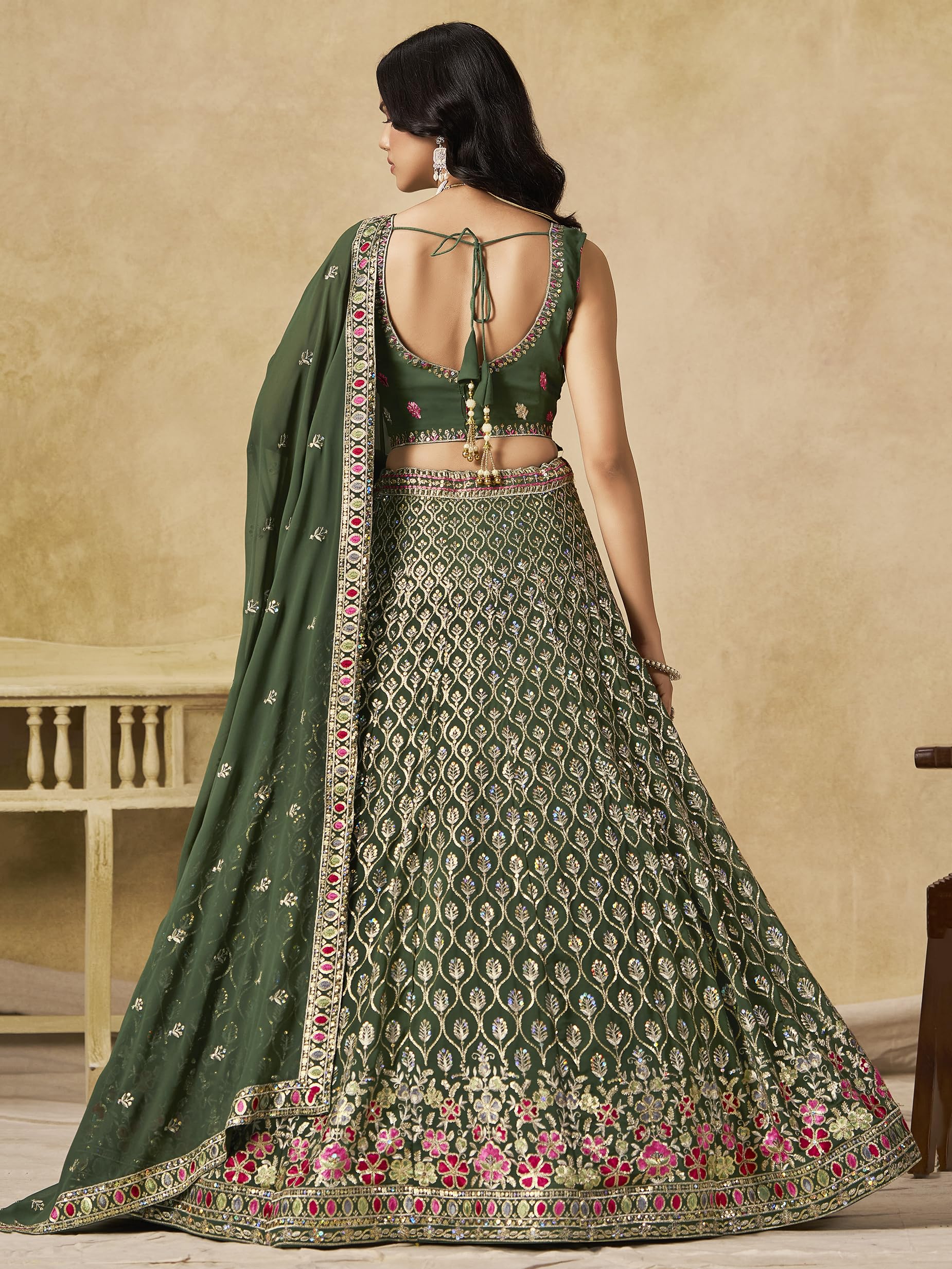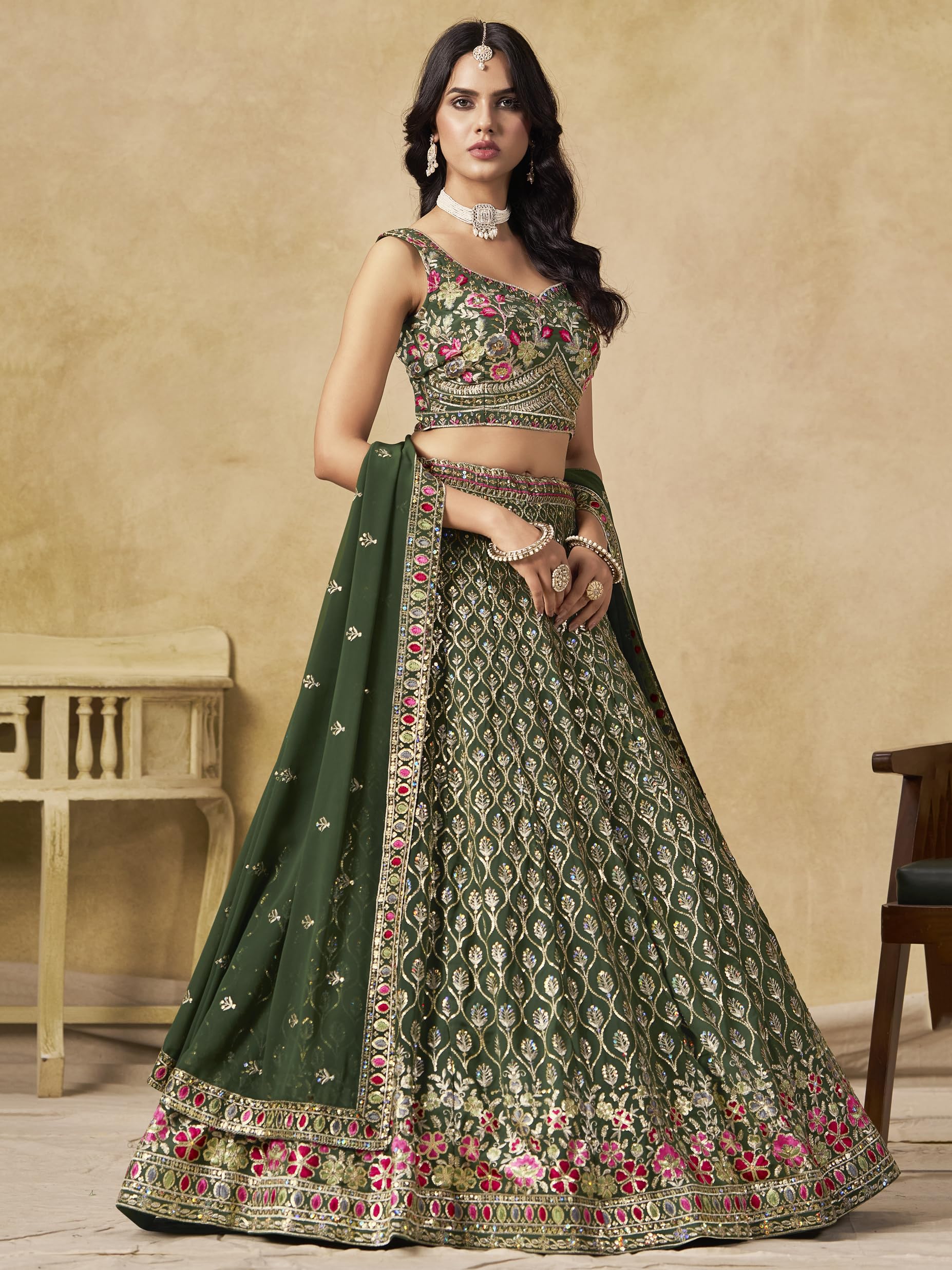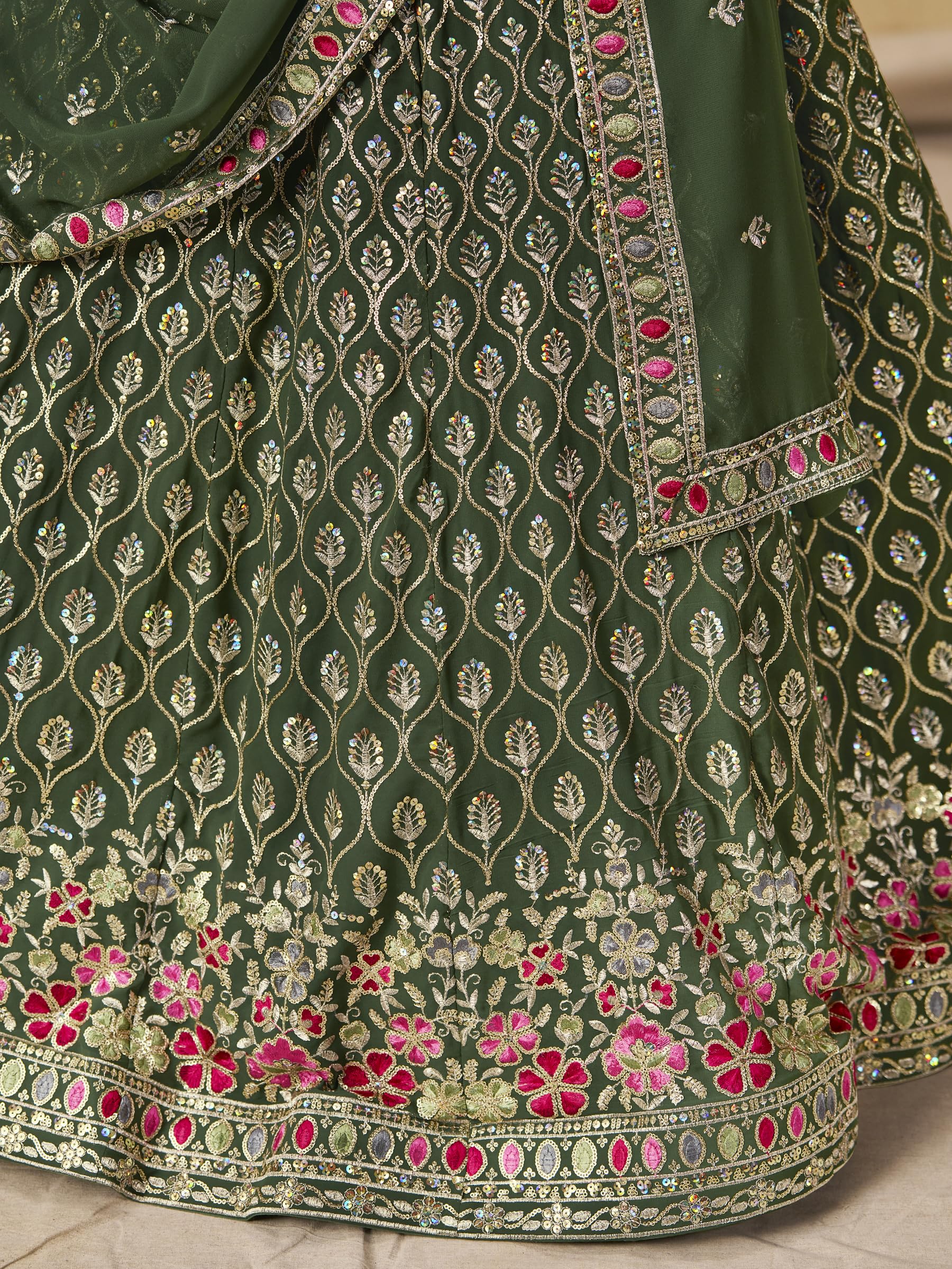 Zeel Clothing Women's Sequins and Thread Embroidered Work Georgette Lehenga Choli With Dupatta (5134-Women-Lehenga-Choli-Latest; Free size) (Green)