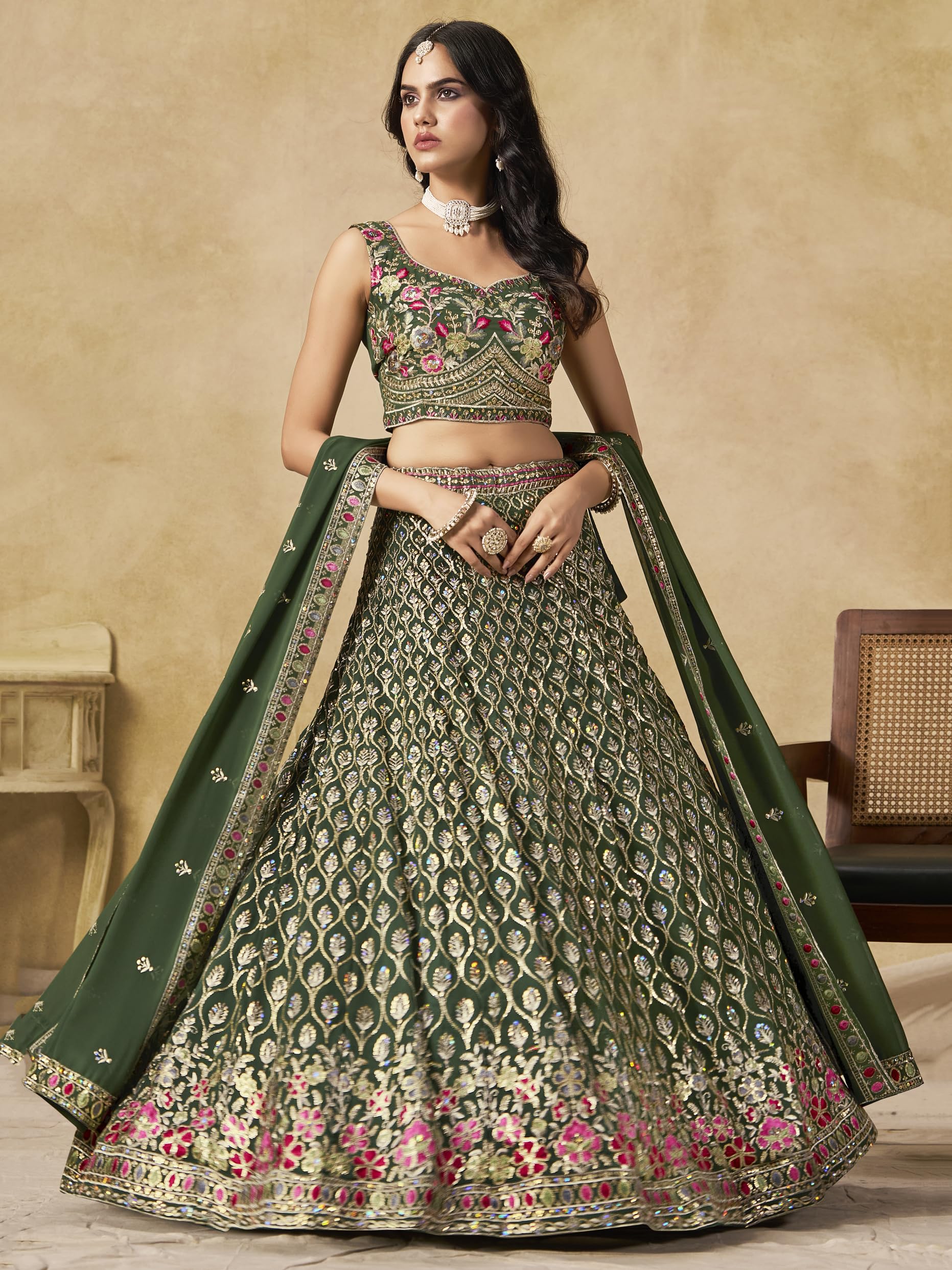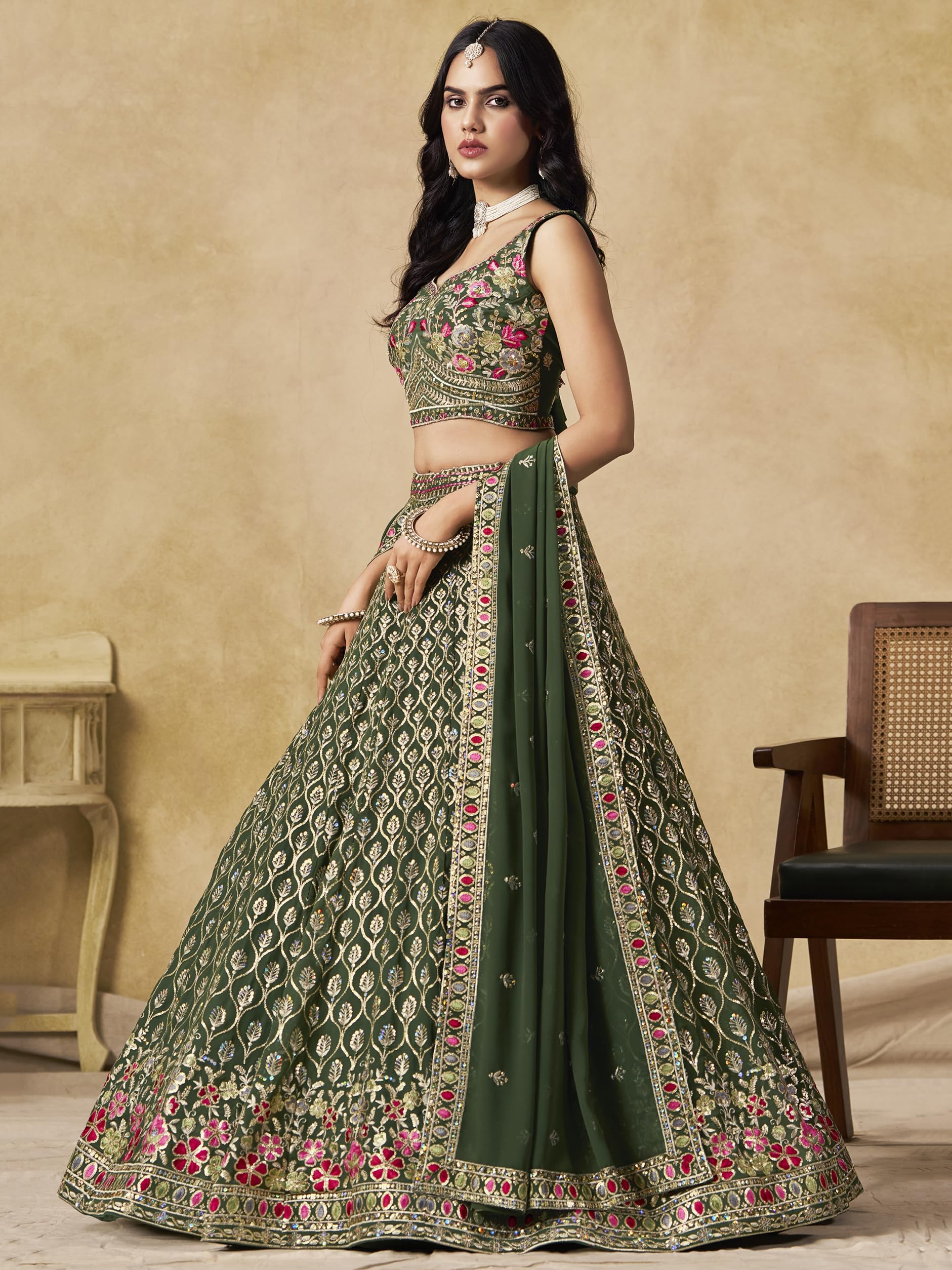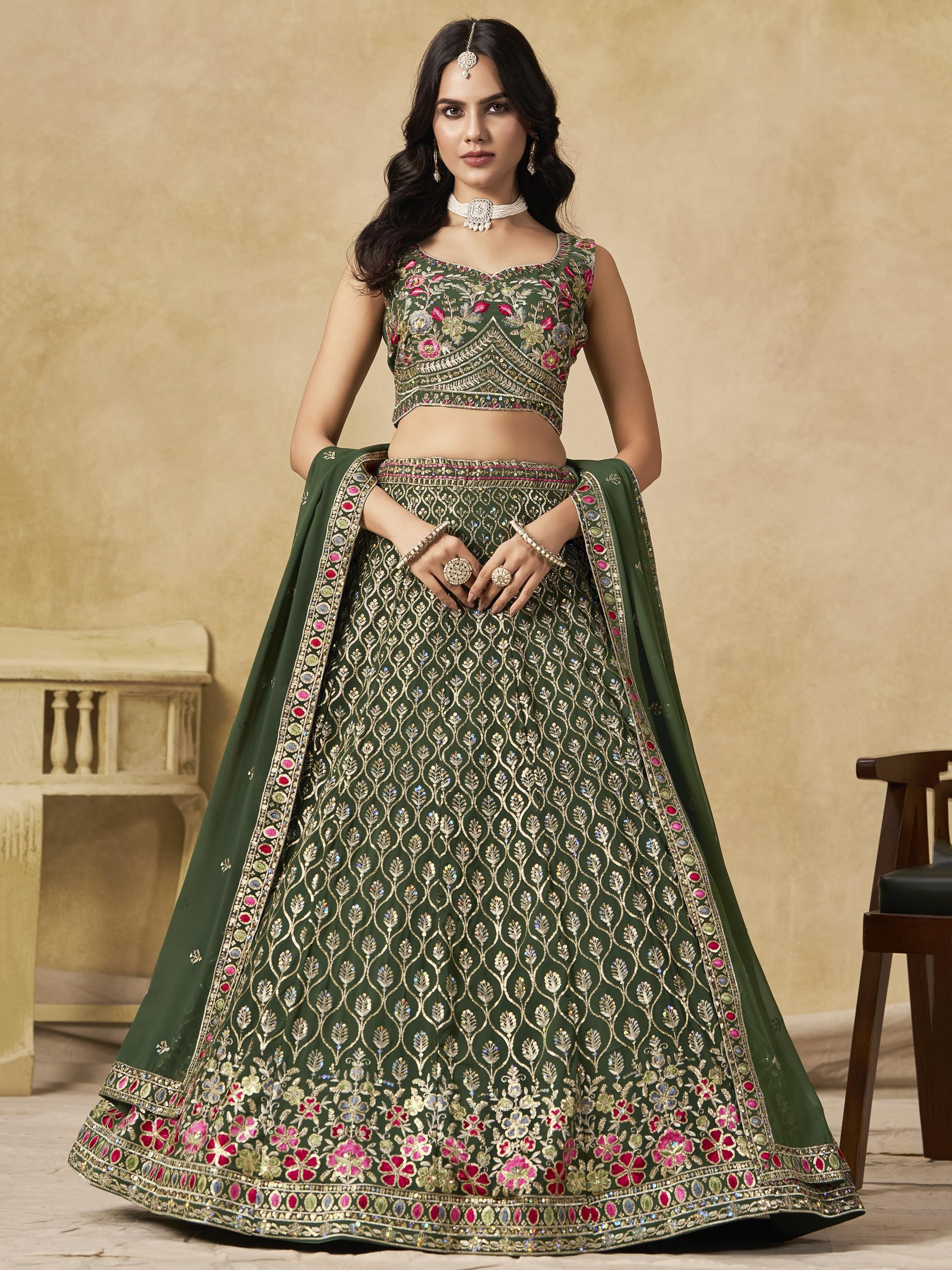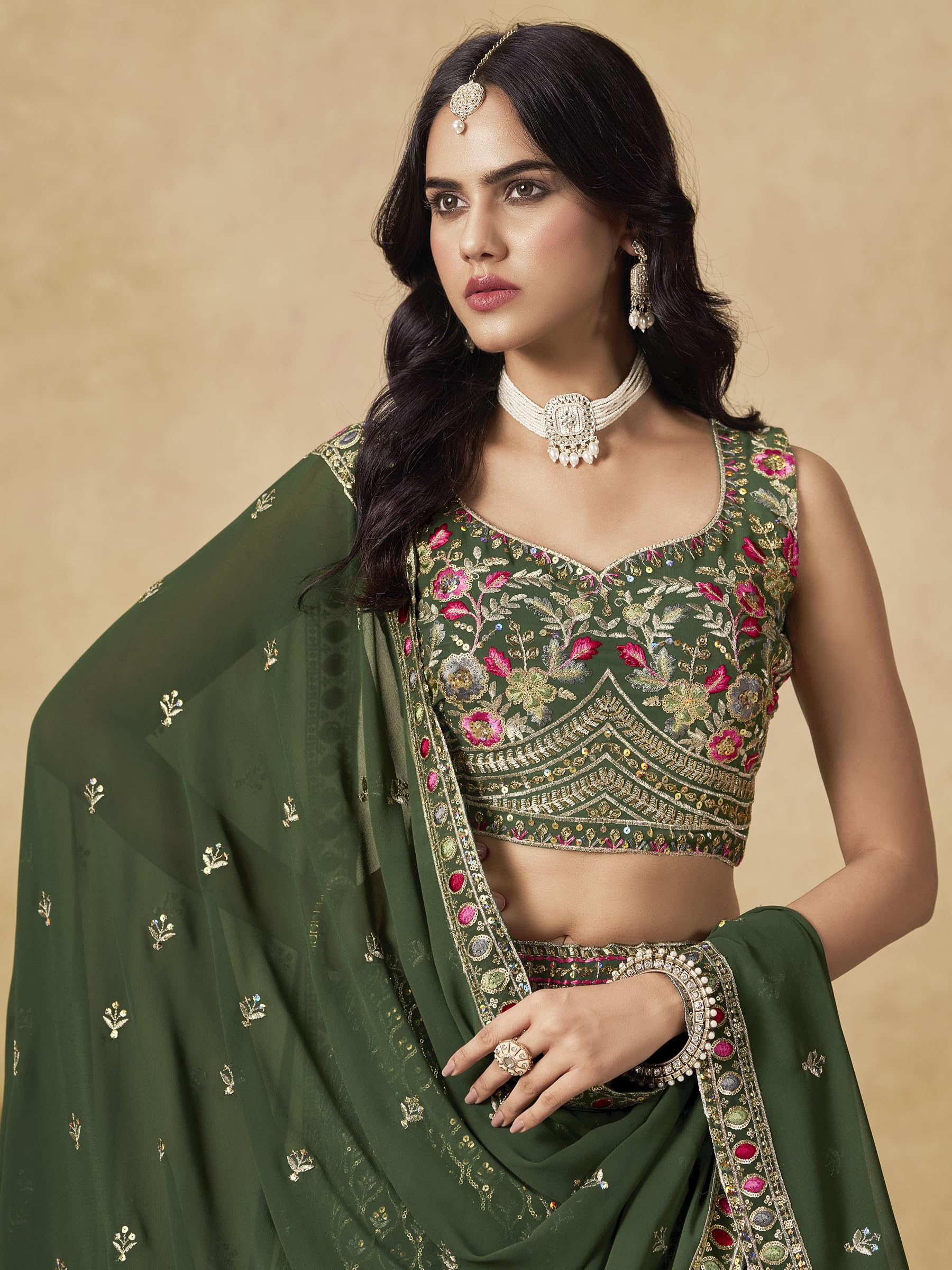 Zeel Clothing Women's Sequins and Thread Embroidered Work Georgette Lehenga Choli With Dupatta (5134-Women-Lehenga-Choli-Latest; Free size) (Green)