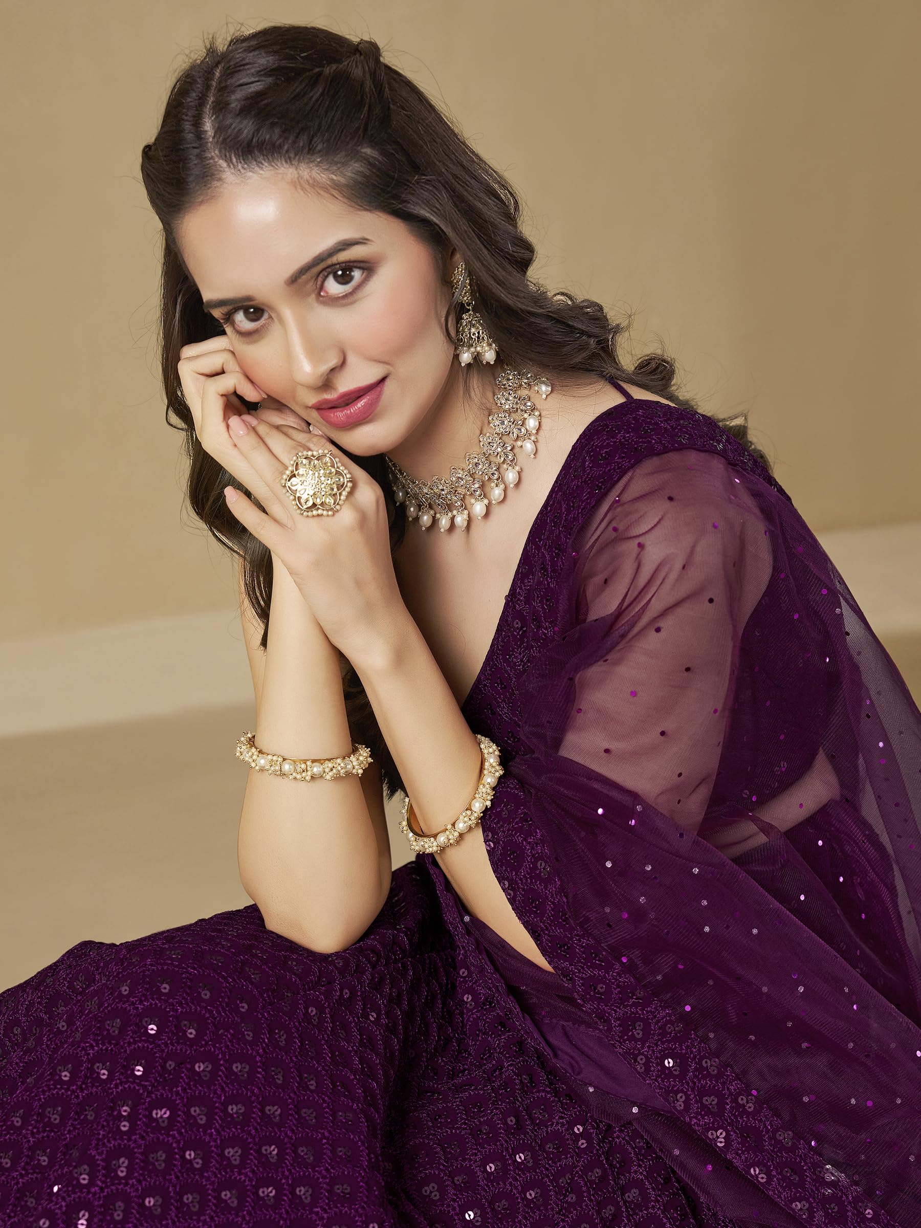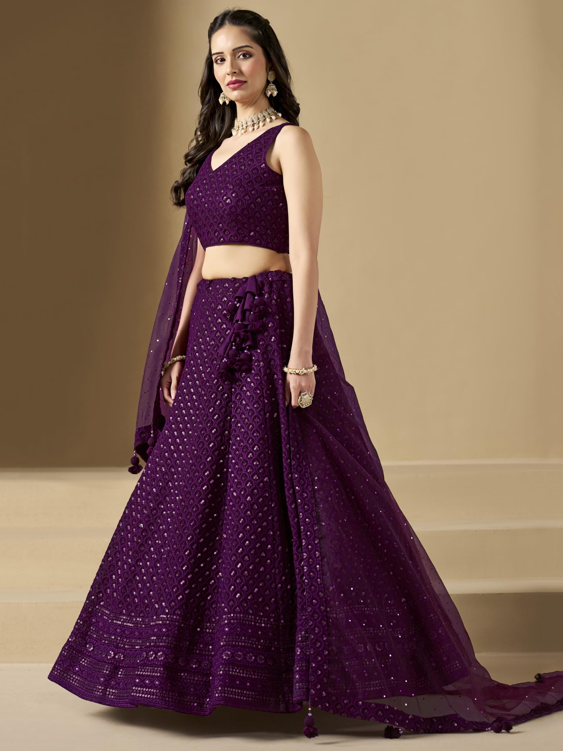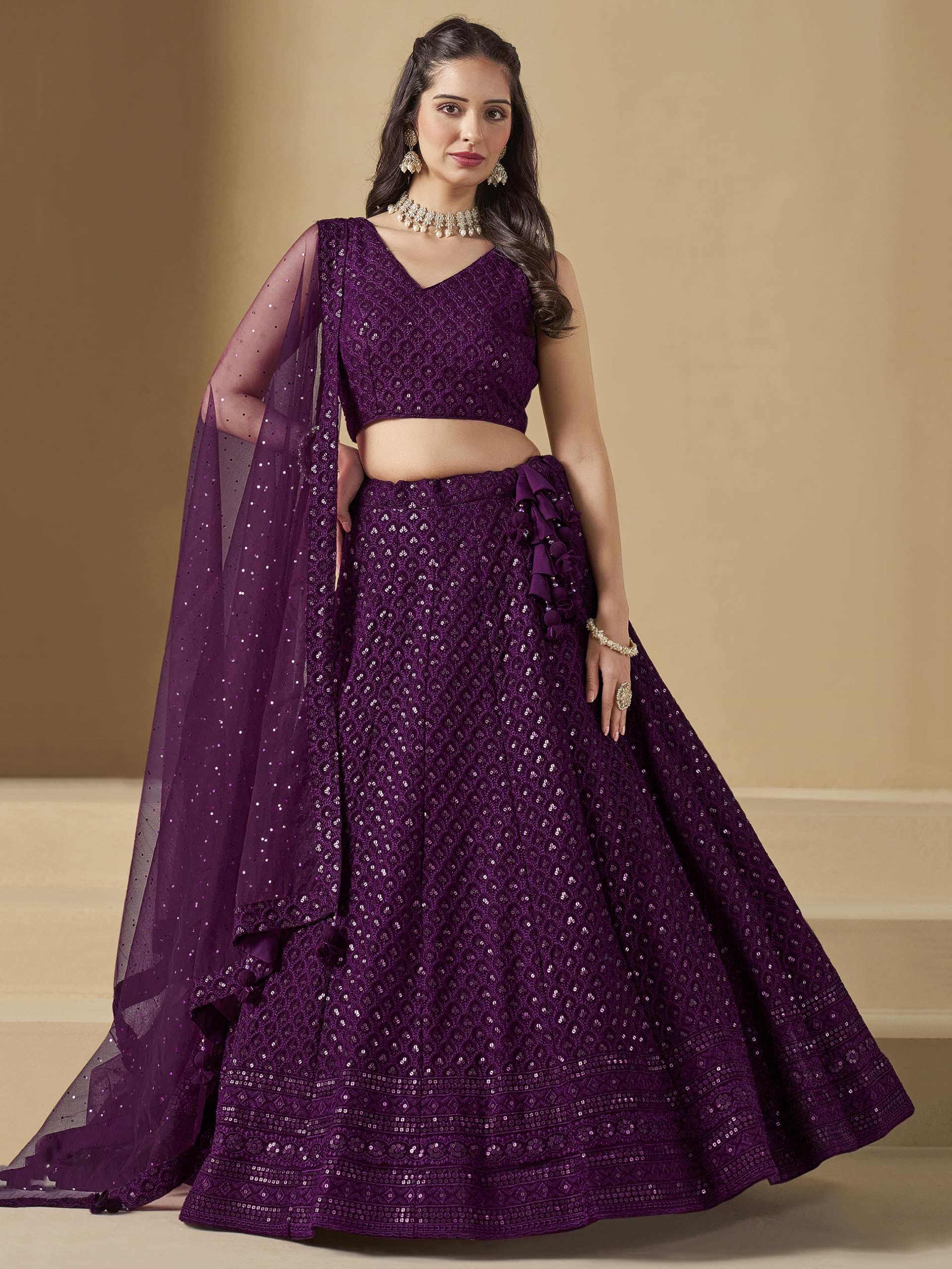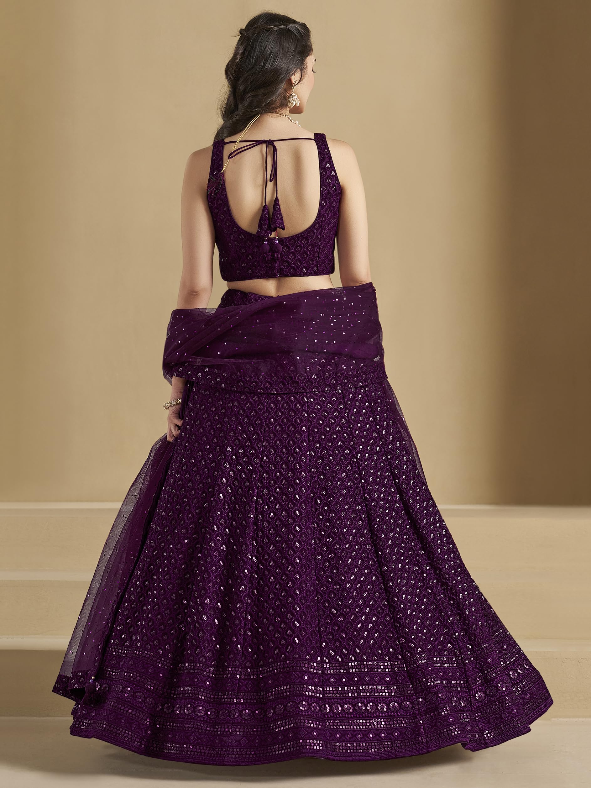 - Lehenga Work: Sequins Thread Embroidered; Blouse Work: Sequins Thread Embroidered; Dupatta Work: Sequins Thread Embroidered