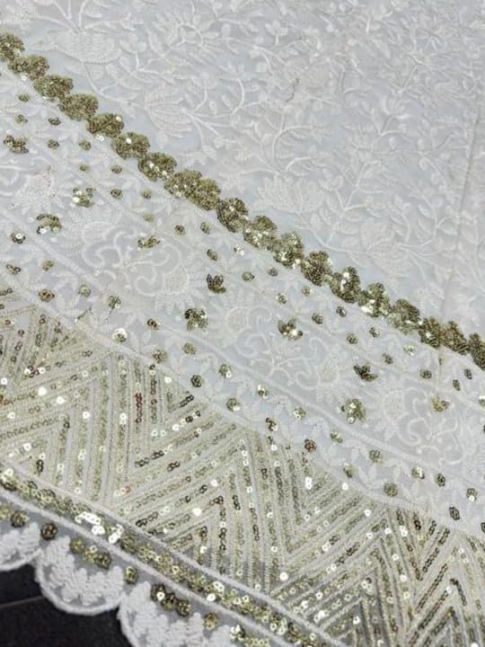 Zeel Clothing Women's Sequins Thread Embroidered Work Georgette Semi-Stitched Lehenga Choli With Dupatta (6018-White-Wedding-Lehenga-Choli, Free size) (White)