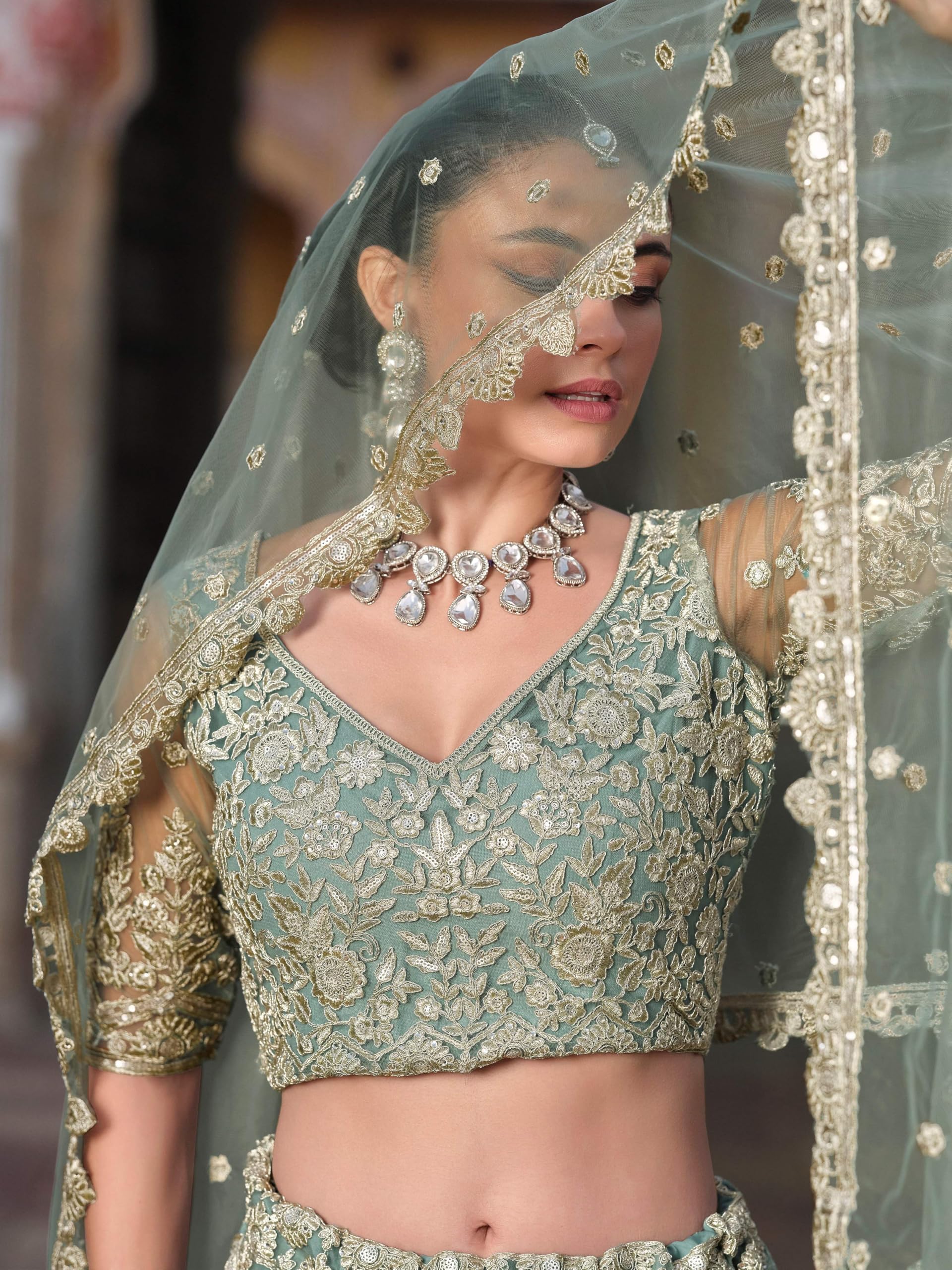 Zeel Clothing Women's Zari Sequins Embroidered Work Soft Net Lehenga Choli With Dupatta (6013-Women-Lehenga-Choli-Latest; Free size) (Yellow) (Pista)