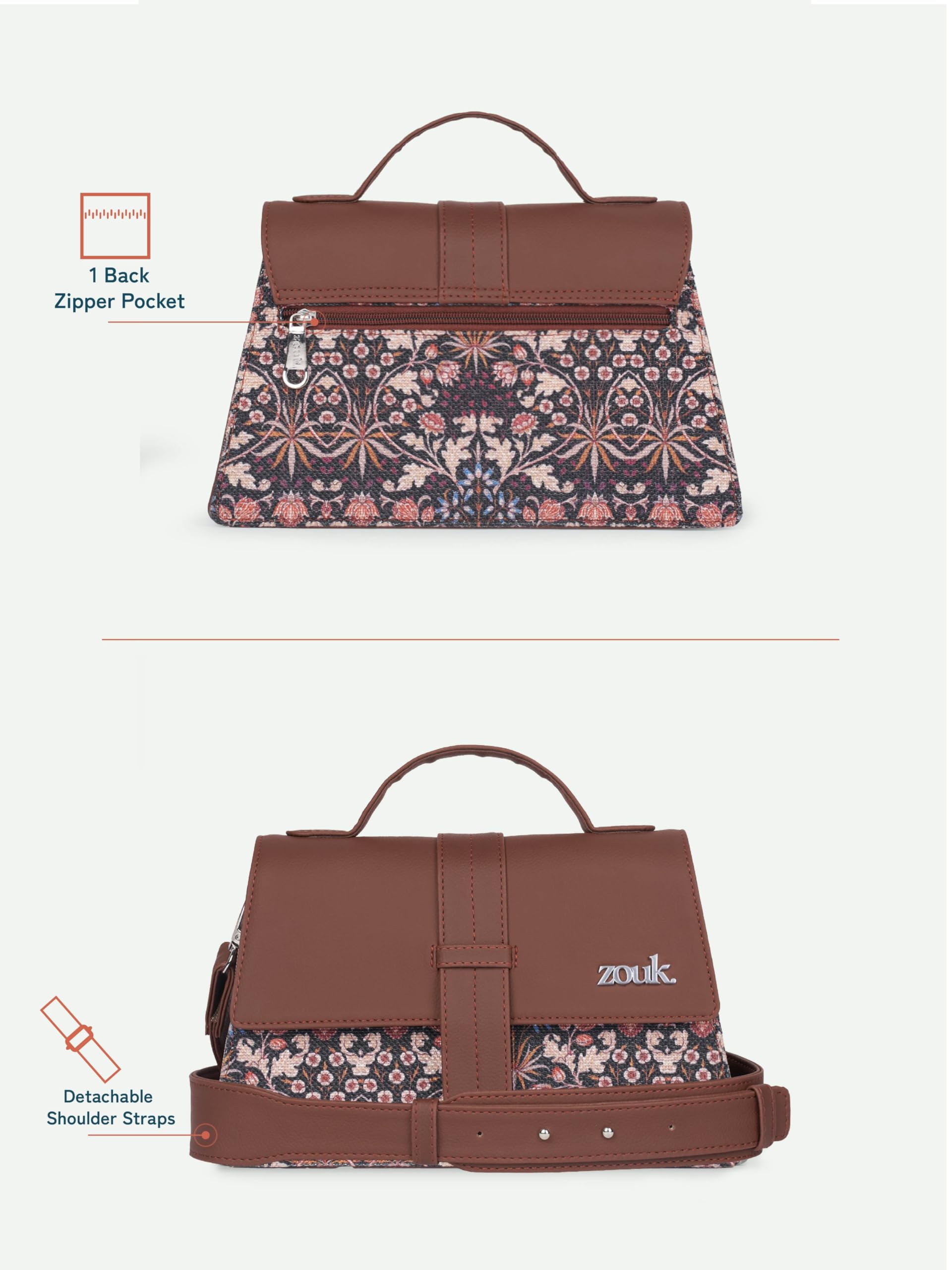 ZOUK Kriti Sanon Iconic Evening Satchel for Women | Flap Closure Handbag | Sling & Shoulder Bag | Satchel Bag for Party, Office & Everyday Use | Kashmir Blooms