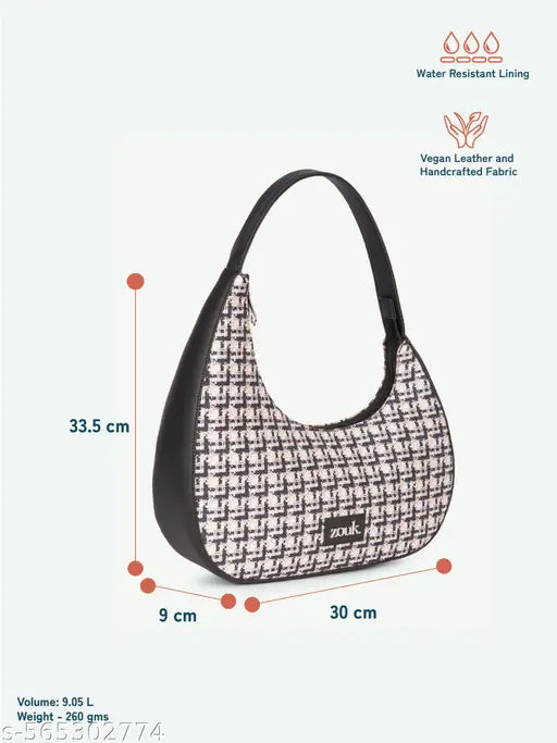 The Pixi Baguette is a stylish evening bag with a bold curved silhouette and a unique mix of textures. This handcrafted bag is proudly Indian and PETA-approved. It combines minimalistic design with statement style, making it suitable for after-hours events, dinners, and special occasions.