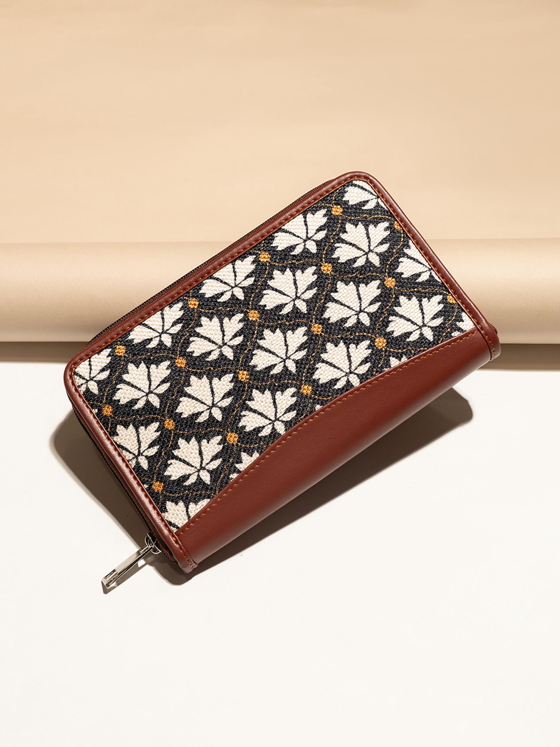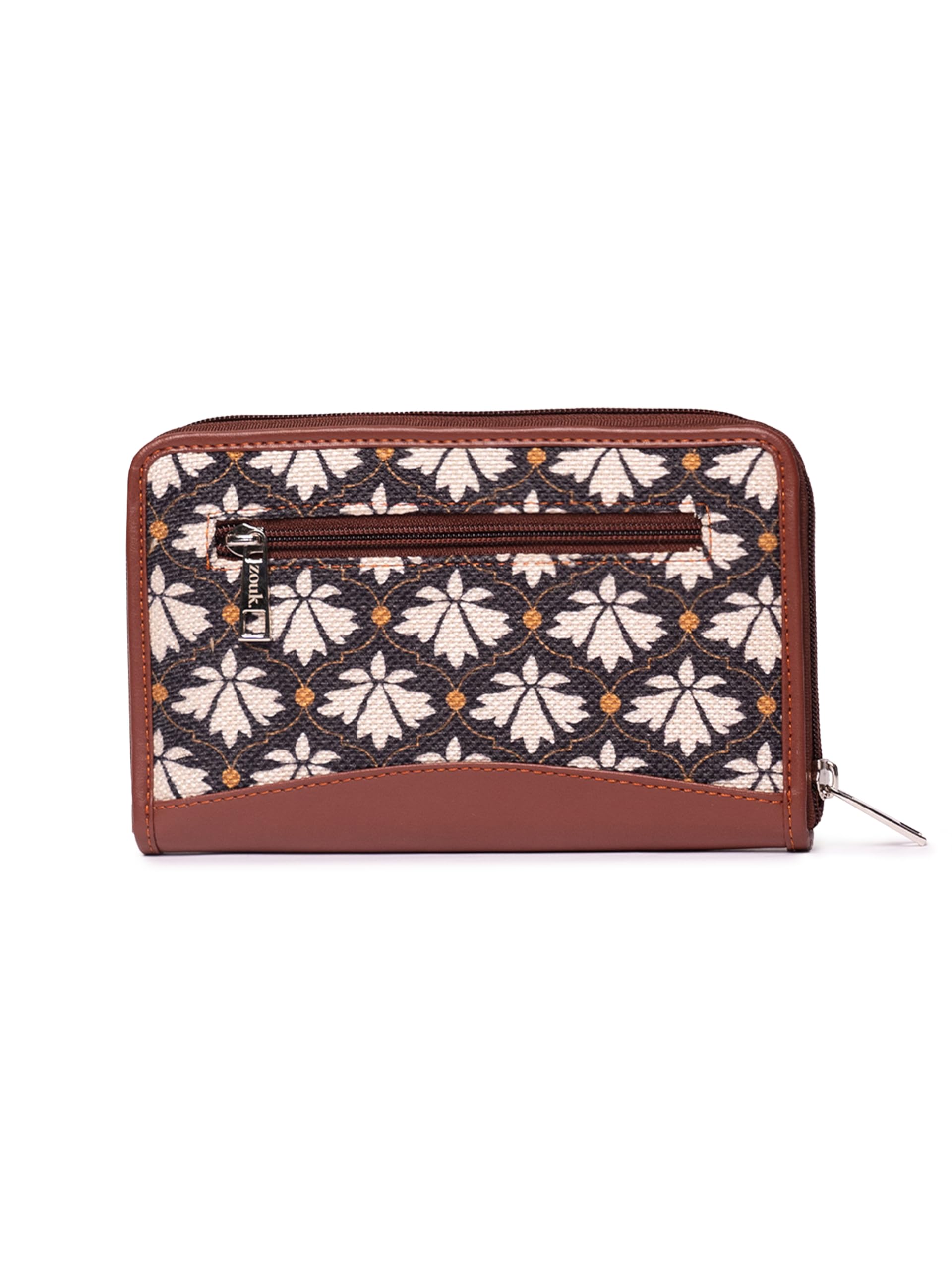 - Material: This female classic wallet is made of fine Indian fabric and 100% PeTA approved vegan leather, thus making it a cruelty-free and responsible product. It has a water-resistant inner lining for long-lasting durability. Note that the product is handmade, with a running fabric and hence the exact print on the product might slightly differ from the photos.