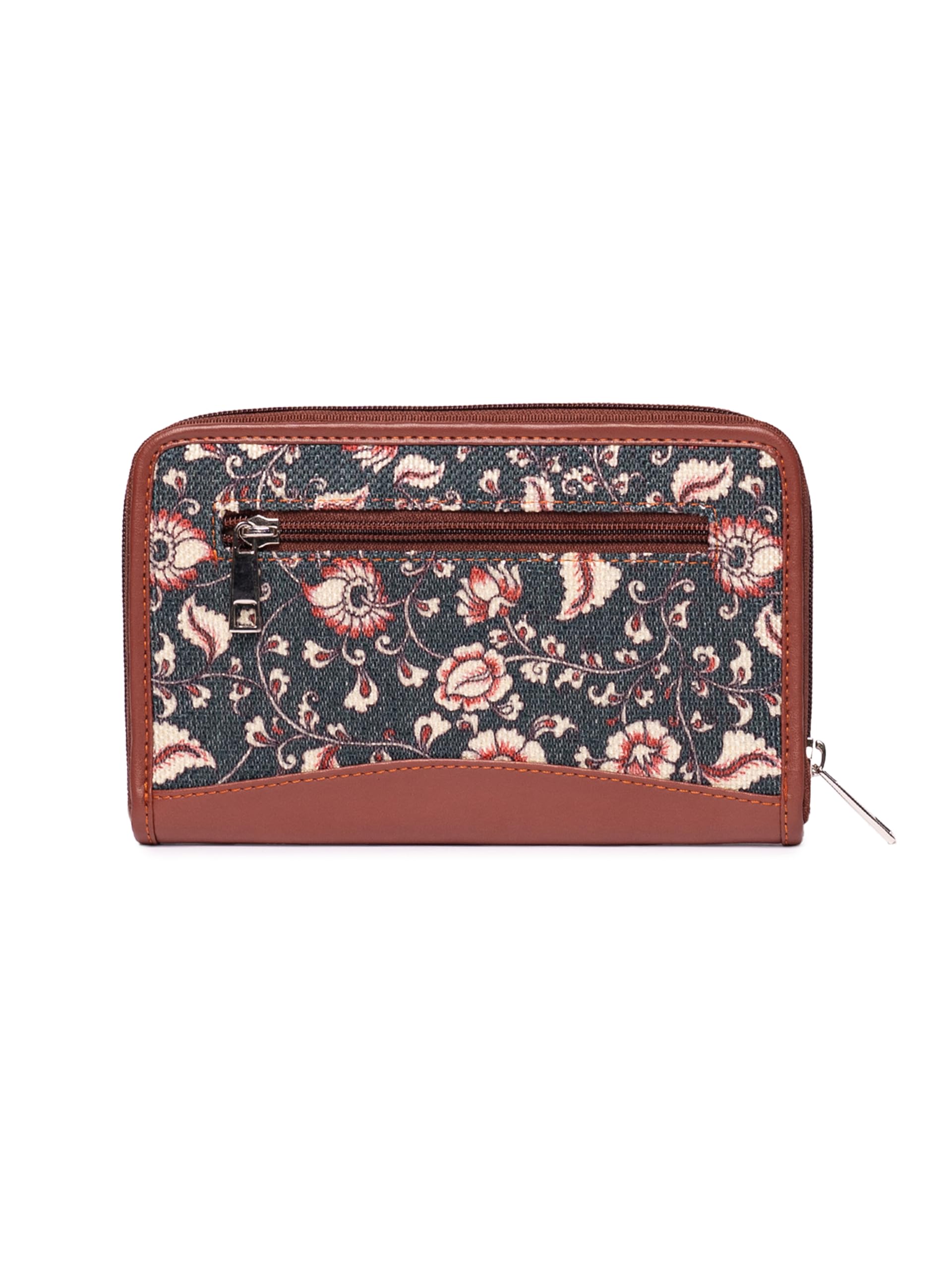 ZOUK Women's Handcrafted Blue Kalamkari Classic Chain Wallet for Mobile Phones
